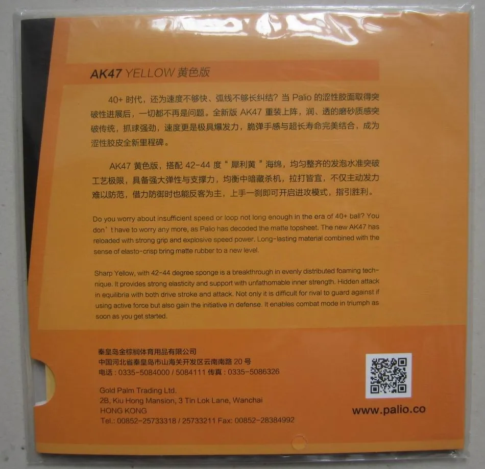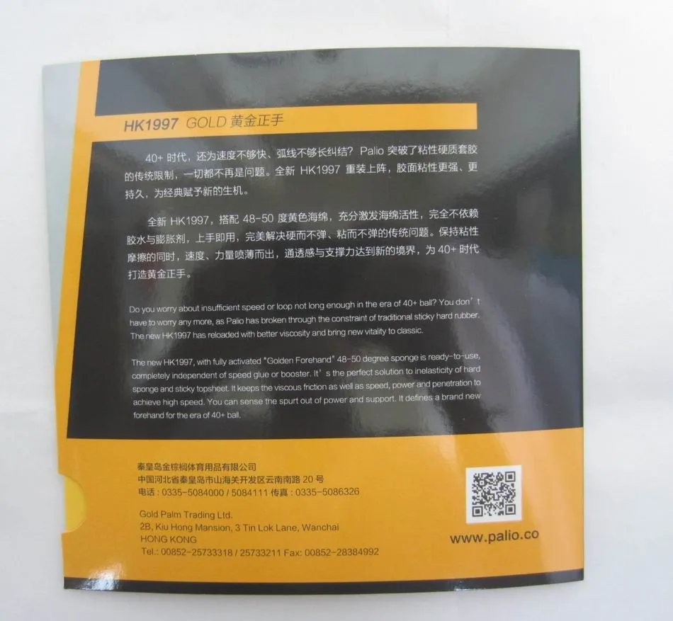 New HK1997, tie-in 48-50 degrees yellow sponge, fully stimulate sponge activity, no glue and expansive agent, to fit the box, perfect solve hard and don’t play, not play traditional problems. Keep the viscous friction at the same time, speed, strength, flares, and fully support reached a new level, make gold forehand is 40 + era.